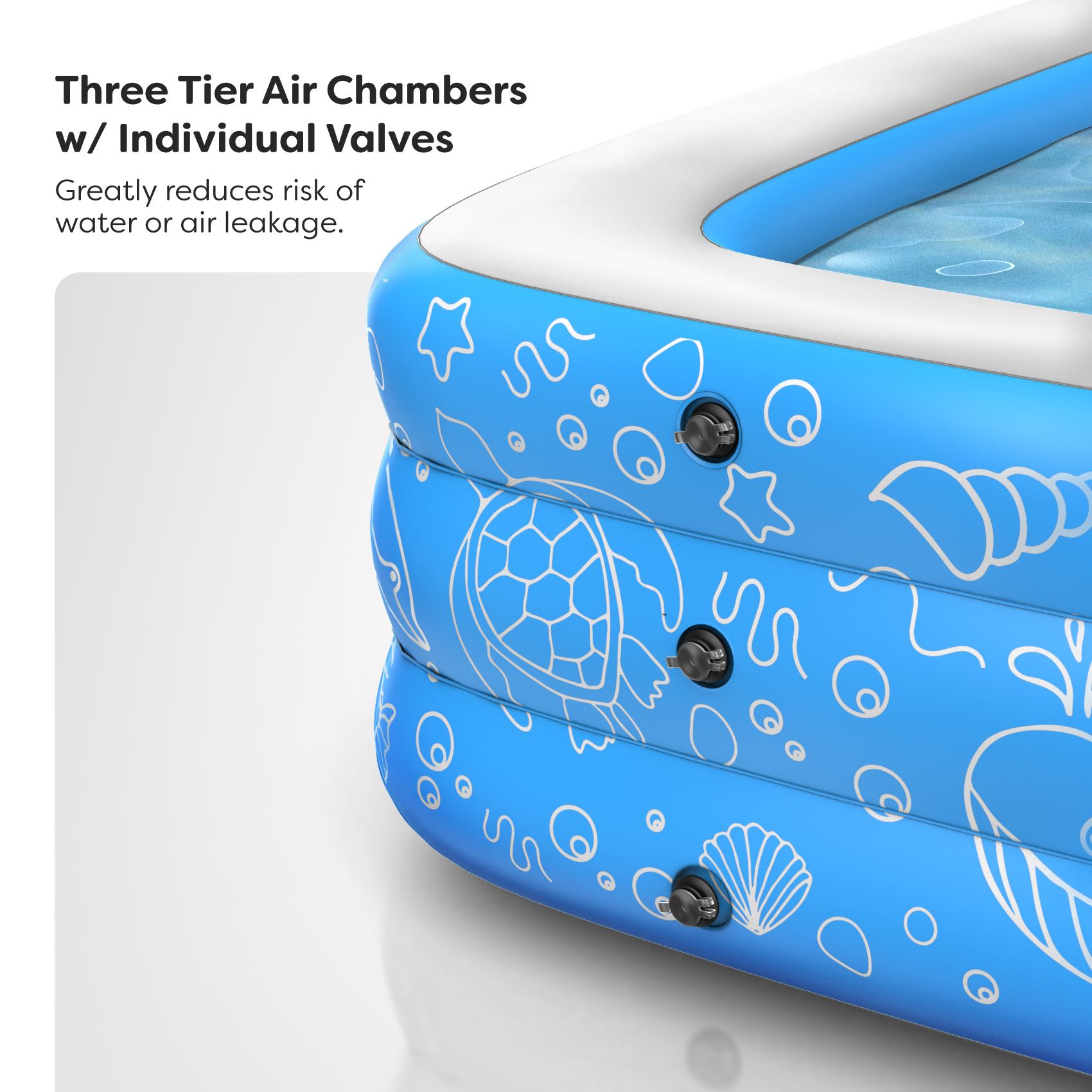 Sturdy Design with 3 Individual air chambers to provide durability to the walls and prevent air leakage (includes 3 separate fill valves)