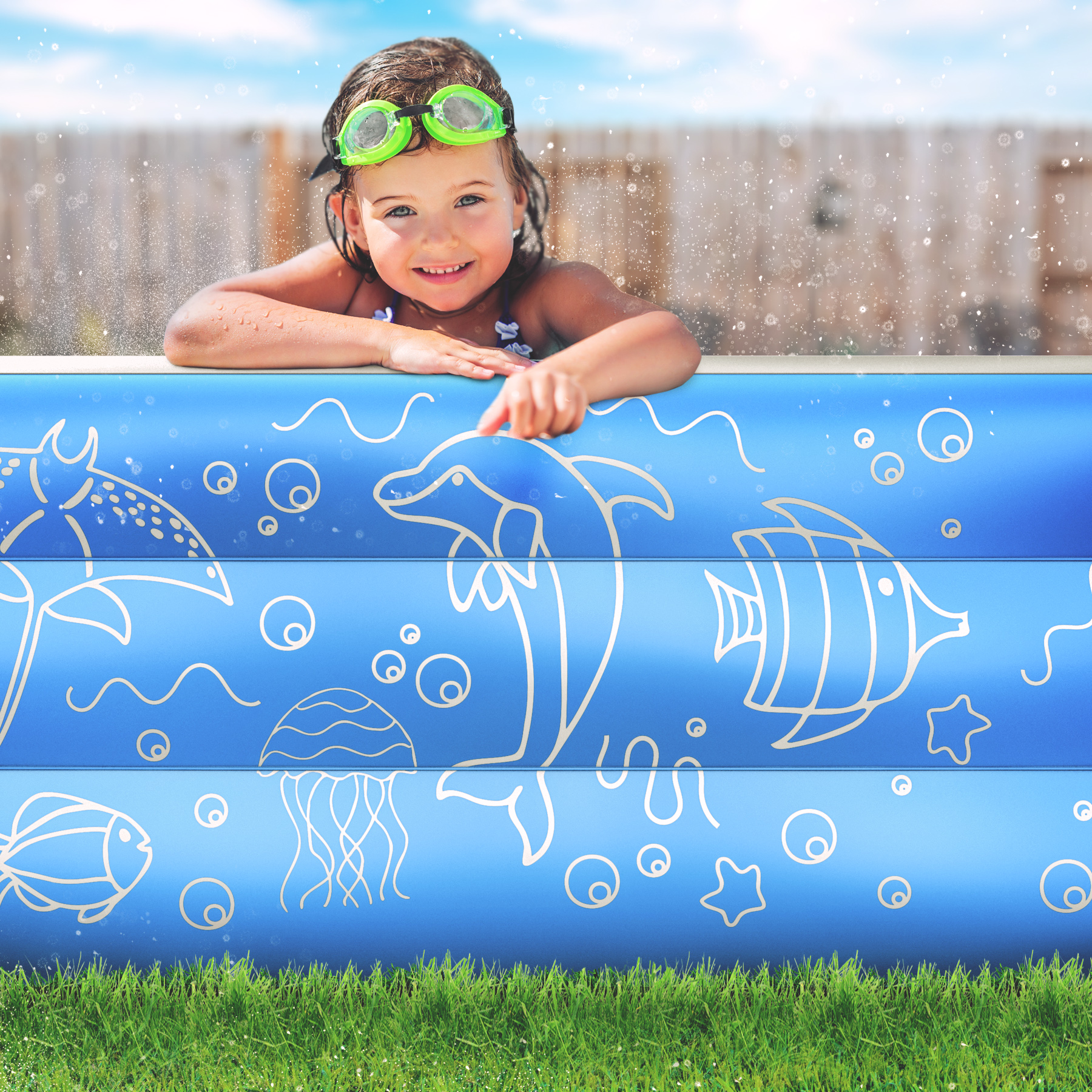 Big enough for the ENTIRE FAMILY! Enjoy this summer with our XXL inflatable pool with space to accommodate up to 6 people! (10′ x 6′ Ft)