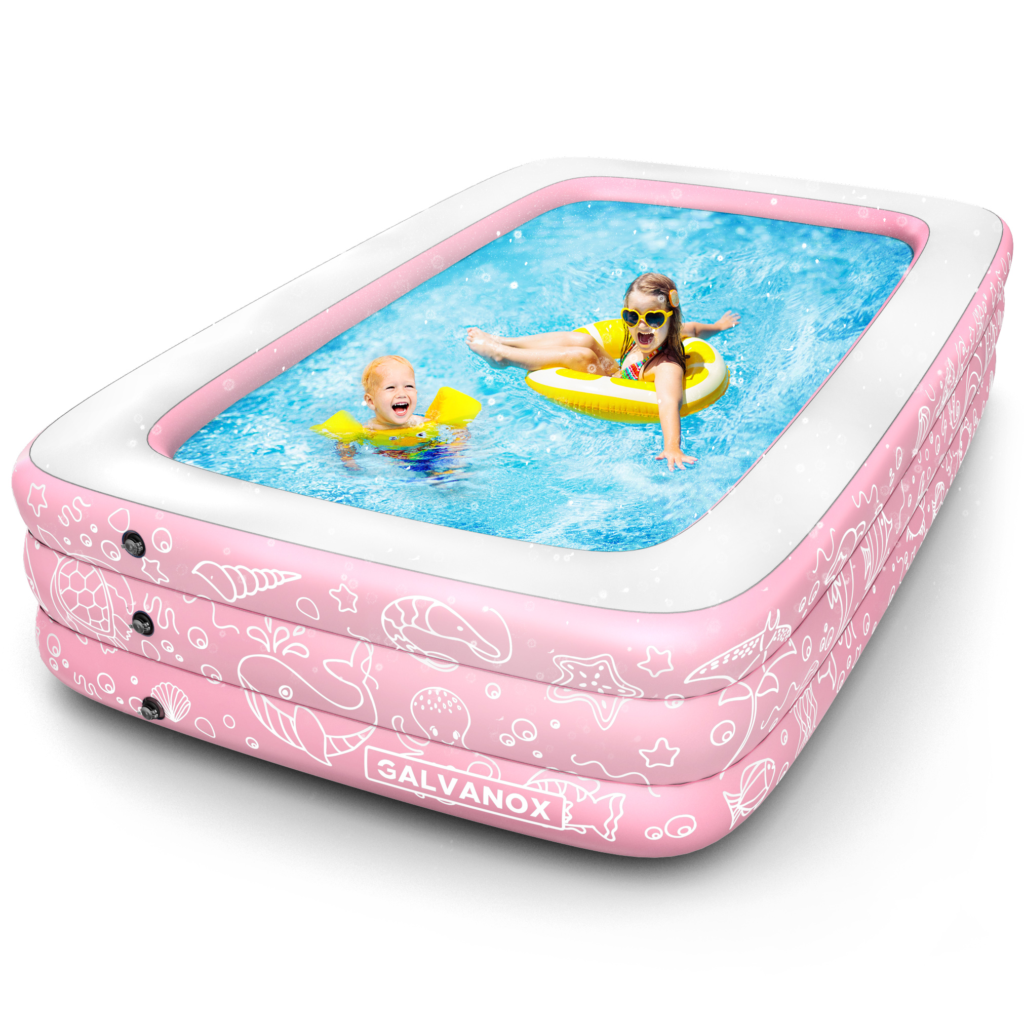 Big enough for the ENTIRE FAMILY! Enjoy this summer with our XXL inflatable pool with space to accommodate up to 6 people! (10′ x 6′ Ft)